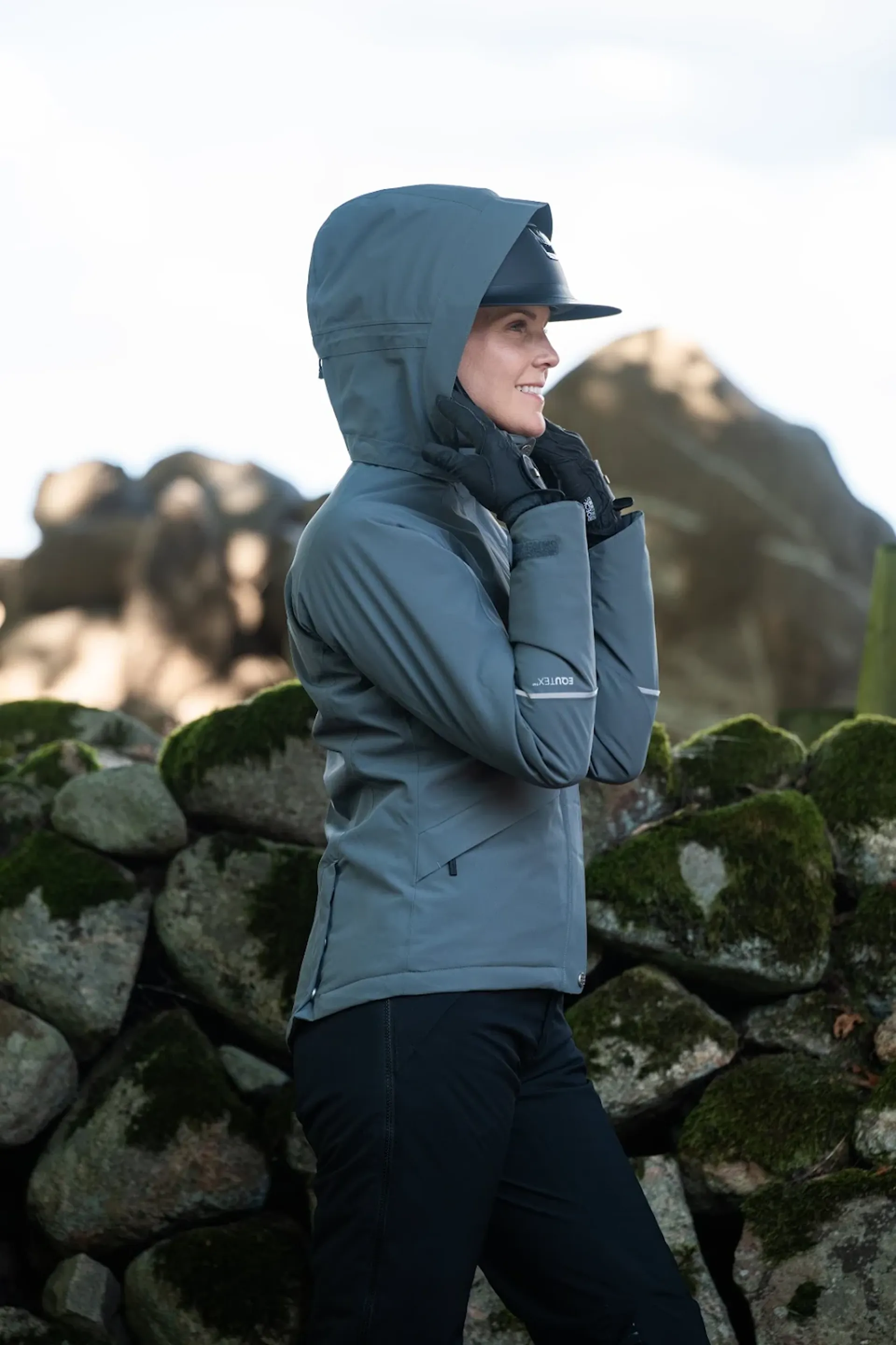 EquTex™, stretch 2-layer re-cycled polyester fabric with waterproof and breathable membrane. Waterproofness 20 000 mm / Breathability 20 000 g/mm2/24h. The shell fabric has an Eco-friendly fluorocarbon-free DWR-treatment