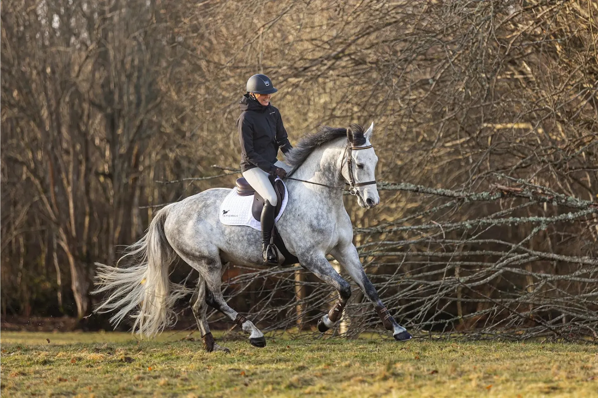 - Recycled polyester fabric and Eco-friendly fluorocarbon-free DWR-treatmentProtects you against rain and wind while releases excess heat and moisture from the body and the layers underneath. A water and windproof yet breathable garment with all seams tape-sealed that will keep you comfortable even during the wettest day. It is your shield against the elements and no matter the conditions you and your horse can still perform at your very best.- High collar with chinguard for comfort