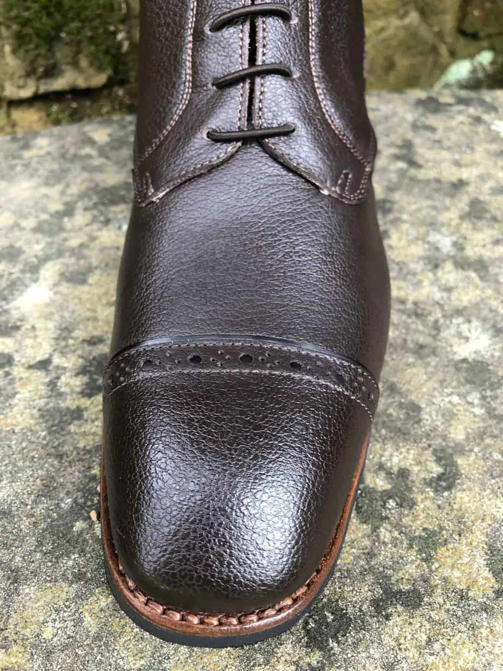 This boot is made in a soft Grainy (Quick) Leather, featuring a brogue pattern across the toe cap and is available in Black, Brown or Blue and for an additional cost they are also available in a Smooth Leather in either Black, Brown and Blue.