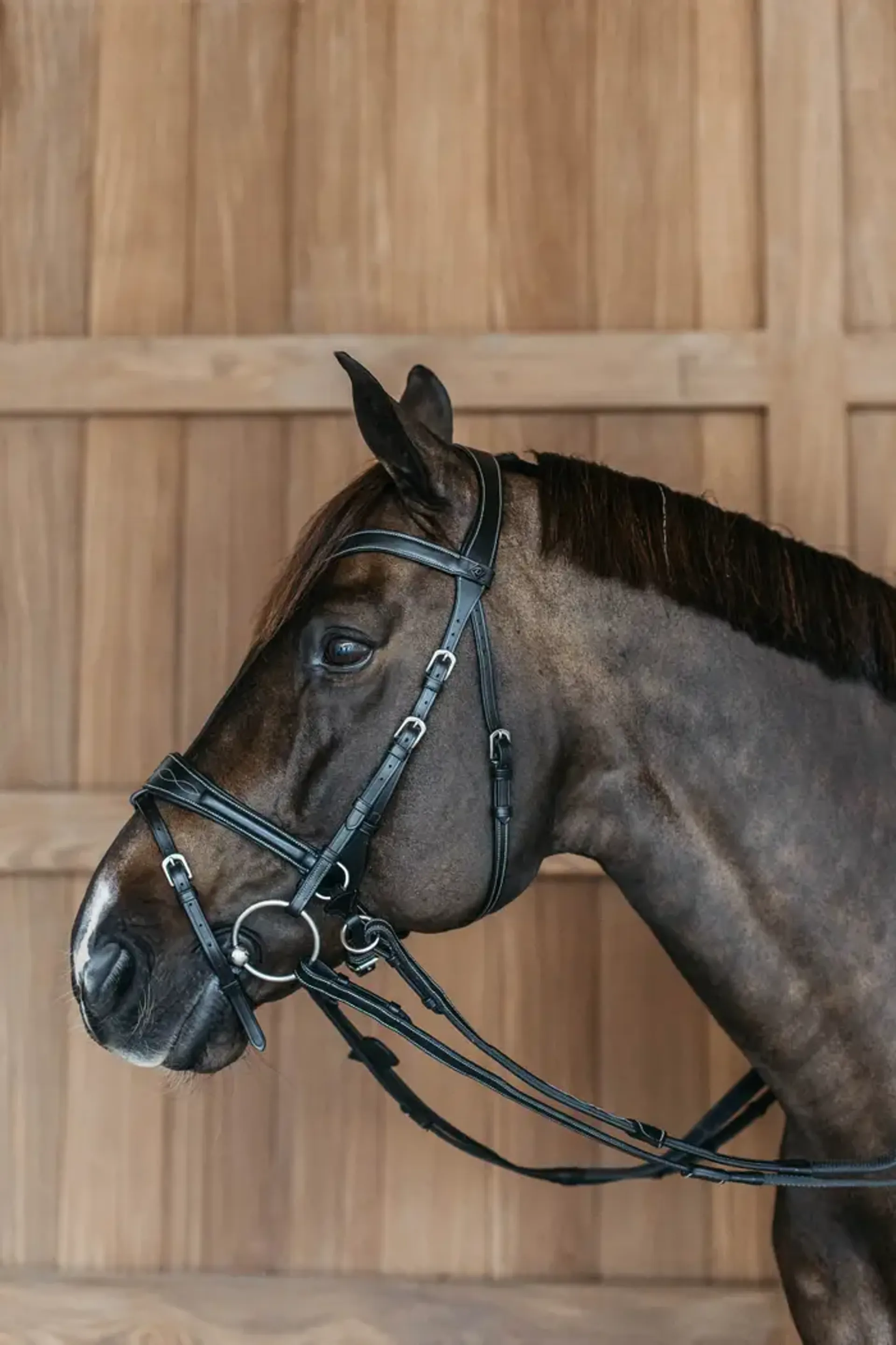 The bridle has a removable flash ½’’ and includes two cross pull straps, which makes it adjustable to your needs and allows five different ways of using it. To optimize the field of vision for your horse, the cheekpieces are positioned below eye level.