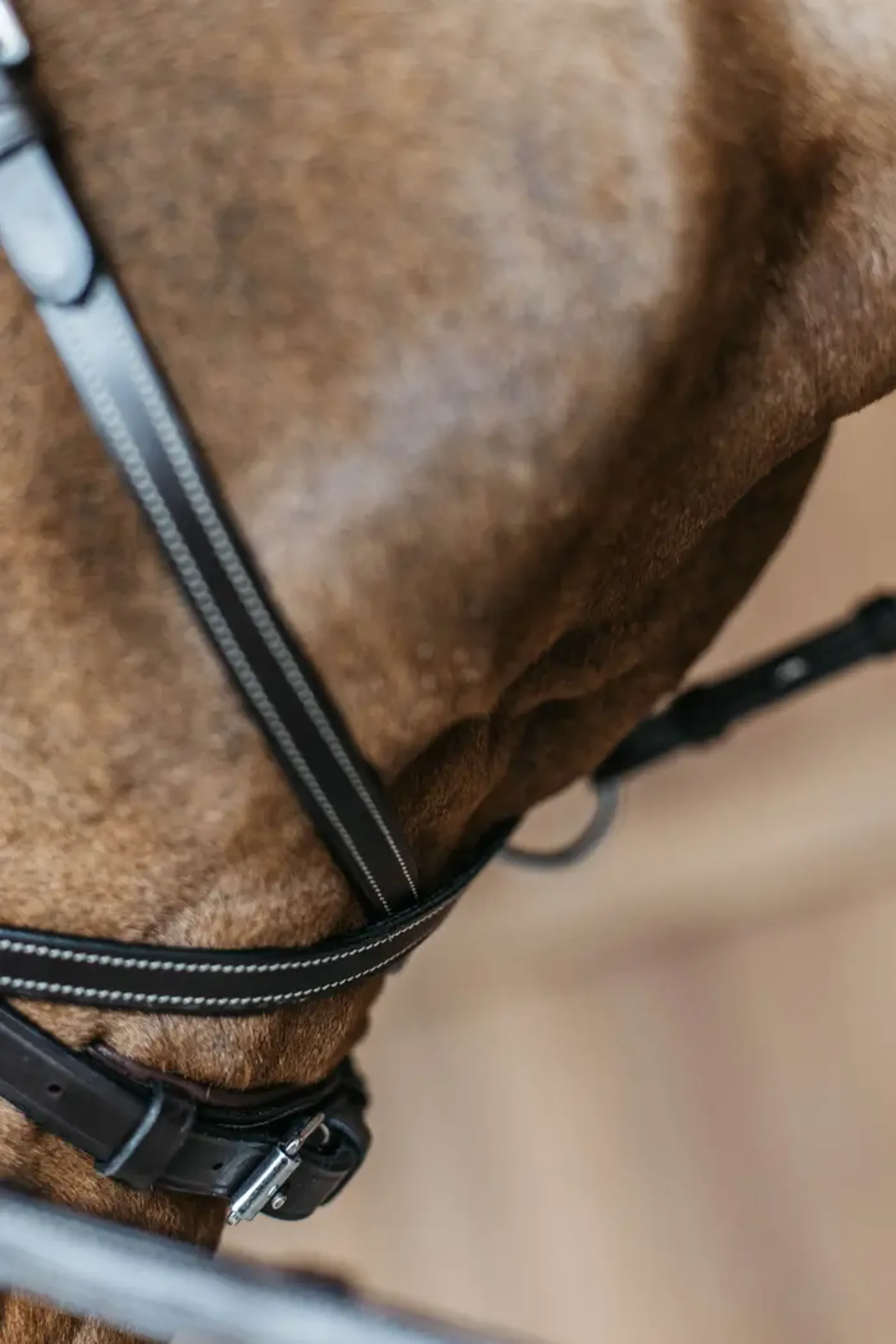 The bridle has a removable flash ½’’ and includes two cross pull straps, which makes it adjustable to your needs and allows five different ways of using it. To optimize the field of vision for your horse, the cheekpieces are positioned below eye level.